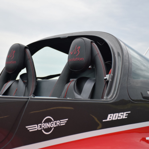 The parachute system is designed to protect occupants in the event of an emergency by lowering the aircraft to the ground after deployment. In the event of an in-flight emergency, pulling the red handle deploys a solid-fuel rocket out a hatch that covers the compartment where the parachute is stored.