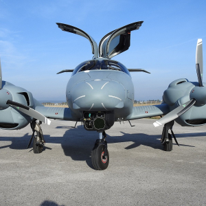 Mission kits can be mounted on specific hard points located on the nose and belly of the aircraft as well as in the cabin and nose luggage compartments. A stronger Universal Nose carries EO/IR cameras up to 20 inch and 60 kg, the belly is designed for maritime or land radar applications up to 50 kg, and the newly designed SATCOM pod easily houses L-, Ku-, or Ka Band antennas.